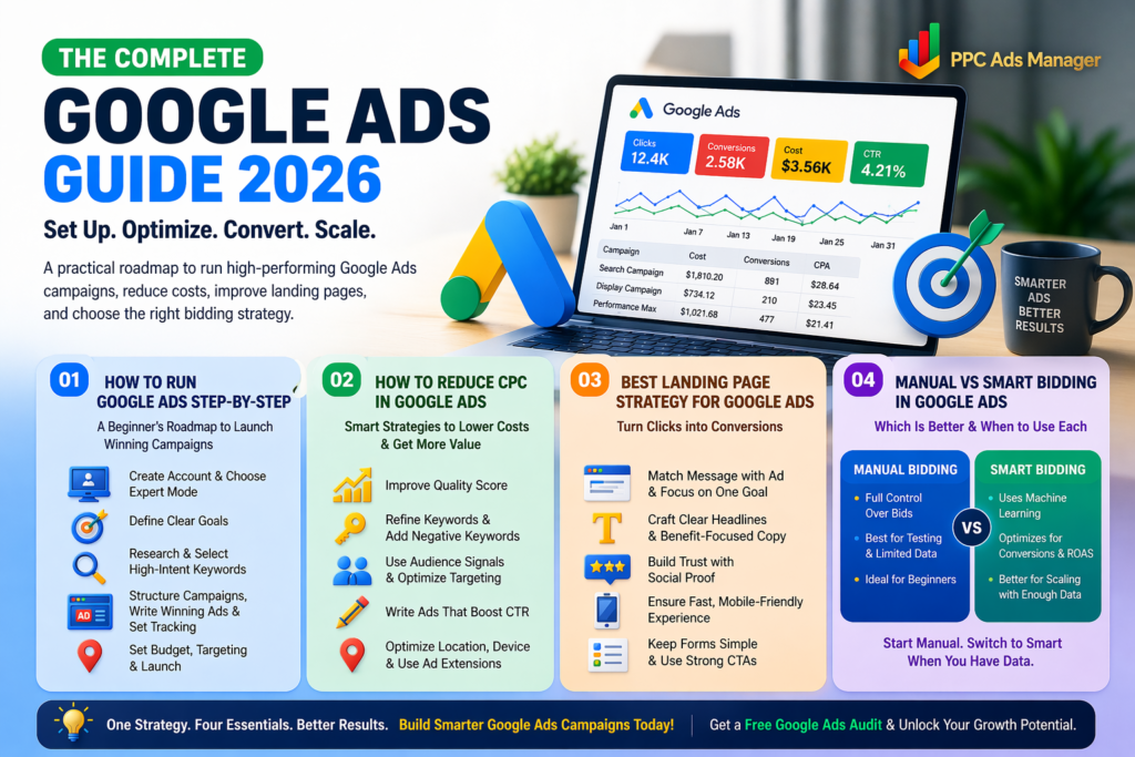 Reducing your cost per click in Google Ads is not just about lowering bids. It is about making smarter decisions that align with how Google’s algorithm evaluates intent, competition, and relevance. When done right, you can bring down CPC while maintaining or even improving the quality of your traffic. Understand How Smart Bidding Actually Works […]